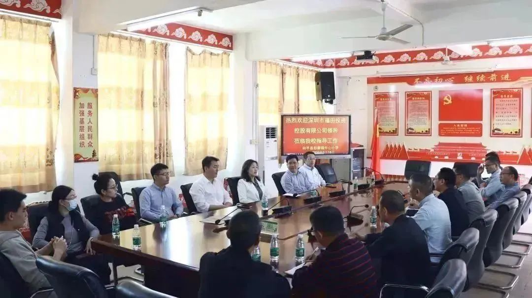 随后,卞雪梅总经理一行又与校方负责人举行座谈会。会上,彭寨中心小学校长叶明伟对福田投控公司为优秀学子颁发奖学金、派驻企业员工任职教师等教育帮扶机制表示感谢。他表示帮扶制度对学校教学成果起到不小的推动作用,学生成绩明显提升,随后他还介绍了未来的学校教育计划。