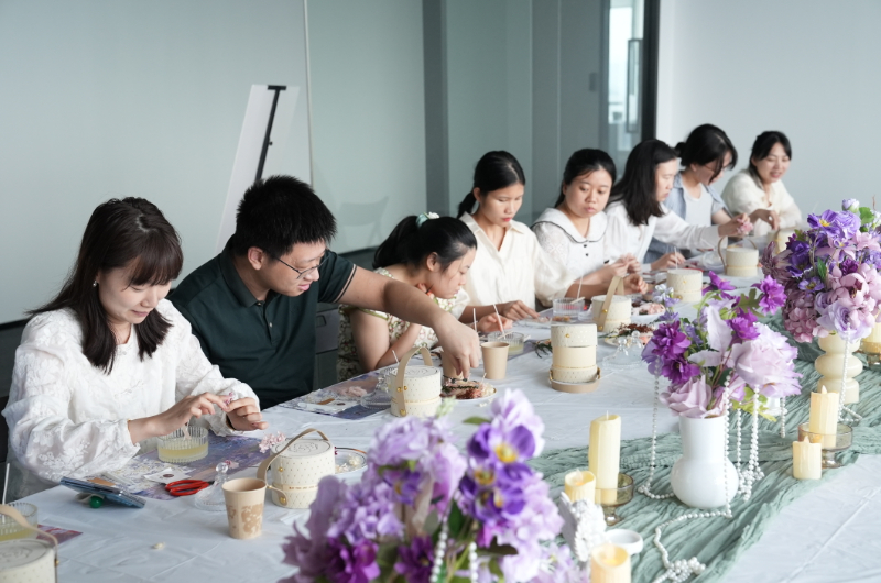 随着时间流逝,一个个精致的香薰蜡烛诞生。大家相互分享作品,展示各自的创意。