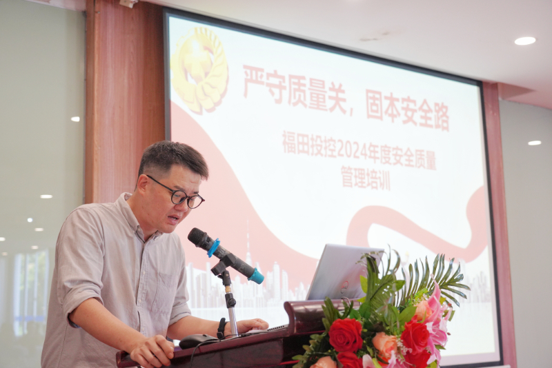福田投控总经理杨宇球在致辞中对福田区住建局、应急局等管理部门的到来表示热烈欢迎和感谢。他表示,随着公司项目管理规模的扩大,做好安全管理工作既是挑战也是责任。此次培训活动以“严守质量关,固本安全路”为主题,目的是进一步强化各项目的安全质量管理准绳:一是要压实责任,绷紧安全弦,严格落实“三必须”责任制度,强化安全隐患排查和闭合管理;二是要提升品质,守好质量关,加强质量过程监督,恪守质量底线,严抓制度执行。