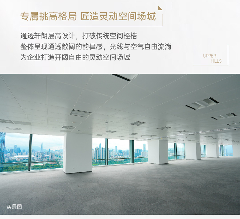 全球商务、创新极核,福田投控持有深业上城B座4-46层(约7.3万㎡)物业,单套建面约200-2800㎡总部级办公空间,全球招商中。