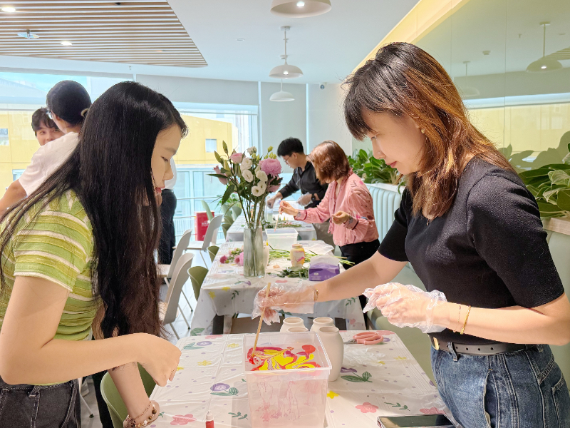 为进一步丰富员工精神文化生活,增强工会组织的凝聚力和向心力,近期,福田投控工会组织开展“花满中秋·水拓流彩”非遗水拓花瓶制作与插花活动,让员工们沉浸式感受传统非遗文化的魅力。
